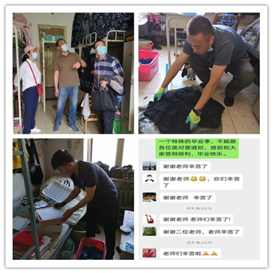因疫情原因,绝大多数毕业生不愿返校领取行李。学院党委做出由专人为毕业生集中整理邮寄行李的决定。为保证行李整理邮寄工作科学高效精准,学院制定了详细的工作流程和规范,同时为检验工作流程可行性,查找工作漏洞和短板,6月6日,学院党委书记和副书记带领全体辅导员深入学生寝室,开展行李整理试点工作,针对实地勘验暴露出的问题,对工作流程和规范进行了调整和优化。