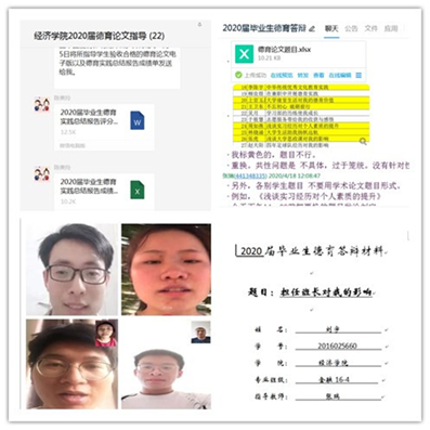 为帮助毕业生全面回顾自己的成长历程,明确今后努力方向和奋斗目标。指导教师对毕业生进行有针对性的指导和帮助,同时结合疫情防控要求,学院及时调整了德育答辩成绩评定方法和评分标准,在保证毕业生德育实践总结报告质量不能因疫情影响而降低的前提下,强化学生对自身思想道德的内省和行为的自律。