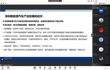 会上韦福雷博士以深圳产业转型发展的历程为引,介绍了深圳通过产业转型促进低碳发展的经验,以新能源汽车产业为案例,阐述了深圳推动绿色低碳产业发展的启示。