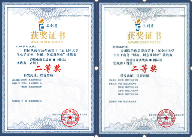 第十二届全国大学生电子商务三创赛于2022年7月下旬圆满落幕。该项赛事始于2009年,是由教育部委托教育部高校电子商务类专业教学指导委员会主办(2020年以后转为全国电子商务产教融合创新联盟和西安交通大学主办)的在校大学生学科性竞赛(校赛、省赛、全国总决赛三级赛事)。迄今已覆盖全国31个省市自治区赛区,第十一届参赛队伍达到10万多支(参赛师生总人数为100万左右)。第十二届三创赛首次增设了“跨境电商实战赛道”比赛,诸侯快讯共有11支队伍报名参赛,其中国贸专业同学报名了10支队伍,最终取得了省赛省一等奖1项,二等奖2项,三等奖6项的好成绩,籍丹宁、王一雯和李静老师获得了优秀指导教师证书。