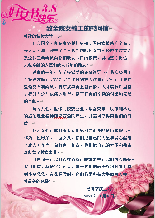 致全院女教工的慰问信