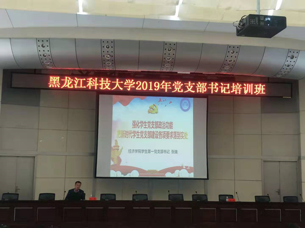 我院学生第一党支部书记张瑞在培训班上做了题为《强化学生党支部政治功能 把新时代学生党支部建设各项要求落到实处》工作经验交流。